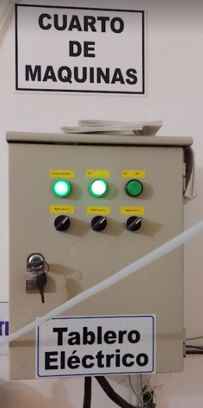 Esta mezcla homogenizada se inyecta al sistema empleando este pequeño pero moderno sistema de control eléctrico, compuesto por dos bombas dosificadoras, una para el coagulante y otra para el desinfectante. Ellas tienen control y protección a través de contactores de voltaje y temporizadores de funcionamiento.
